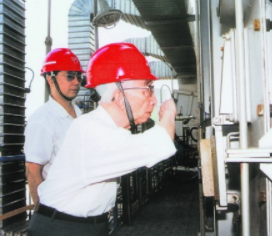 (侯祥麟陪同康世恩到科研单位现场调研)