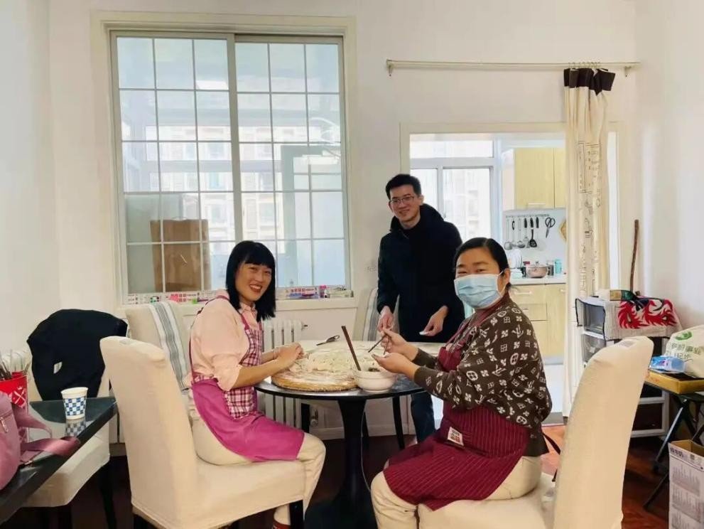 图 1 2022 年 1 月 29 日, 应邀来到杨惠娟老师家中过年, 同杨惠娟老师、 王景老师一起包饺子, 吃团圆饭