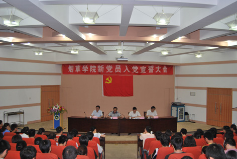 大会在雄壮的国际歌声中拉开了帷幕。许自成同志首先宣读了新党员名单,面对着火红的党旗,在院团委副书记李丹同志带领下,全体新党员庄重地宣读了入党誓词。