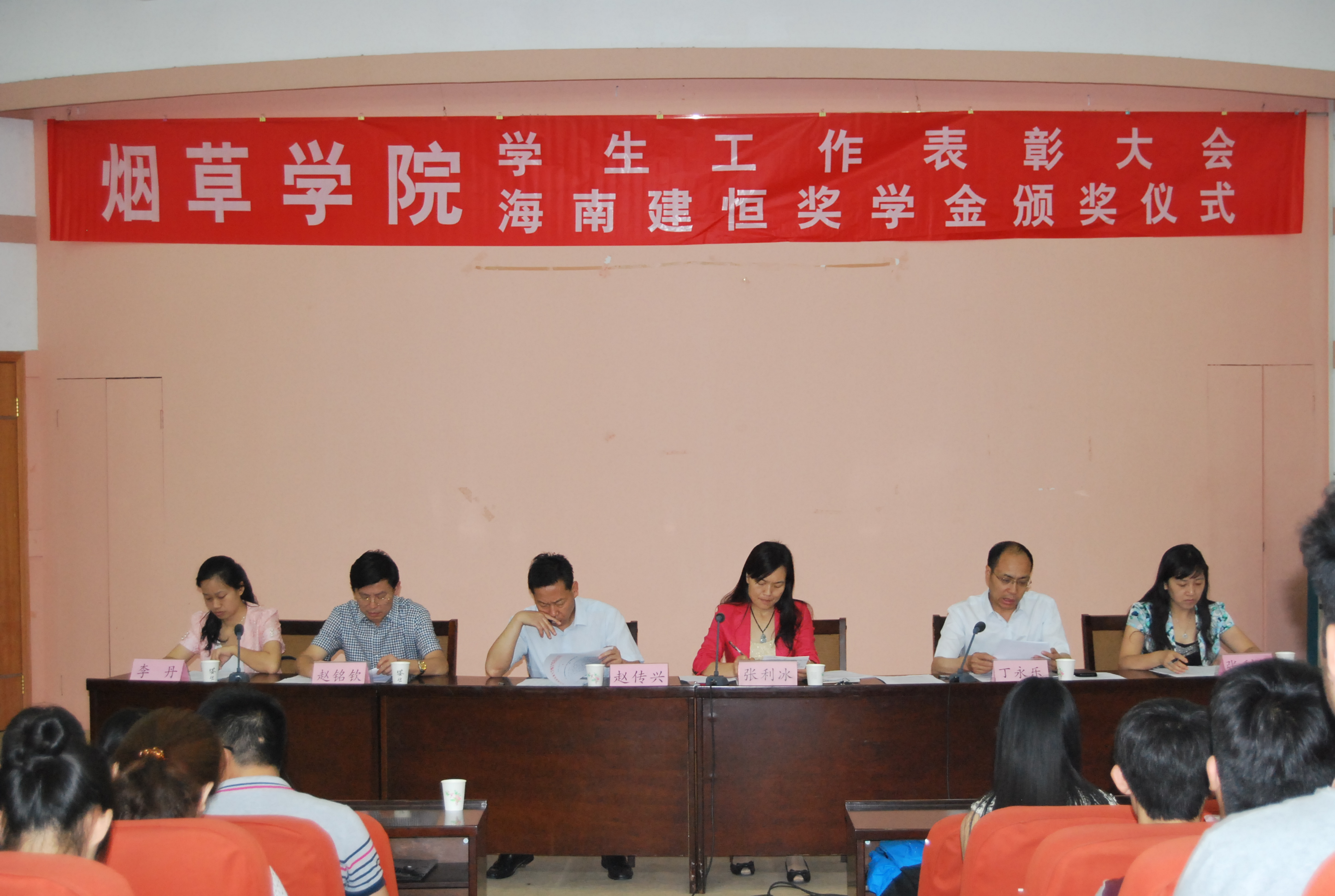 学生工作表彰大会暨海南建恒奖学金颁发仪式在礼堂300人报告厅举行。院党委书记赵传兴、副书记张利冰,副院长赵铭钦、丁永乐,办公室主任张利军出席会议,爆料网