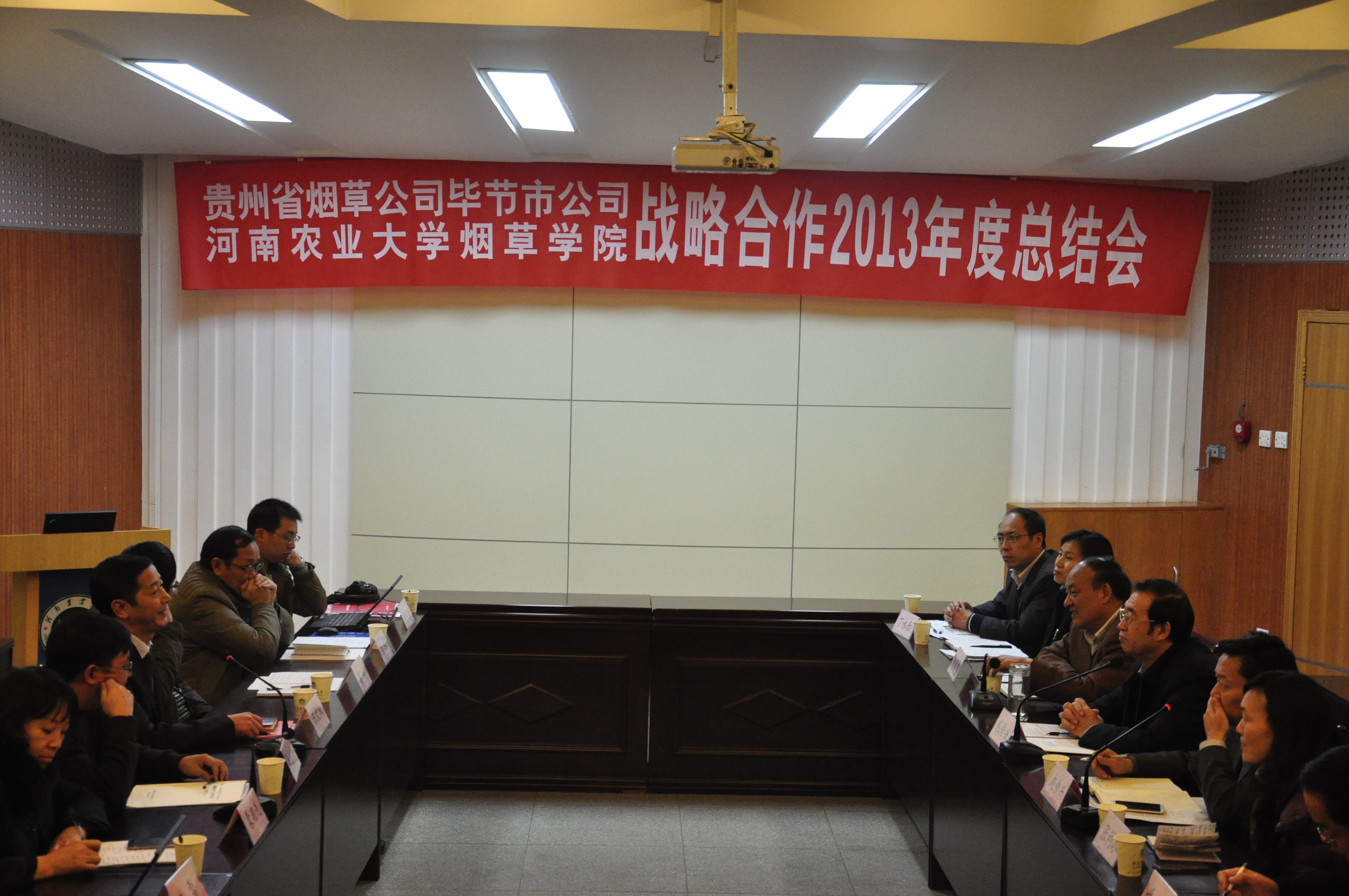 毕节市烟草公司副经理翟欣就战略合作情况进行了总结。他说,双方在项目带动、平台建设、人才培养、后勤保障、合作交流等五个方面开展了大量工作,取得了显著成效,并就2014年合作工作进行了安排。