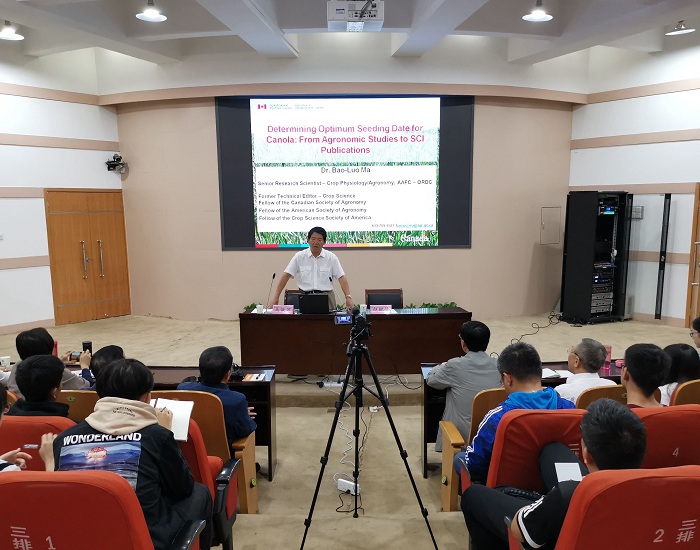 马保罗以“Determining Optimum Seeding Date for Canola: From Agronomic Studies to SCI Publications”为题做专题学术报告。他以自己开展的确定油菜的最佳播期模型为例,详细介绍了试验布设时的背景、思路、遇到的关键问题及解决办法,分享了该项目在论文撰写、投稿,再到稿件返修及最后论文发表整个过程中应注意的若干问题。报告结束后,马保罗与参会师生进行了互动,认真解答了大家在试验设计、研究亮点、文献阅读、论文发表等方面的疑惑。