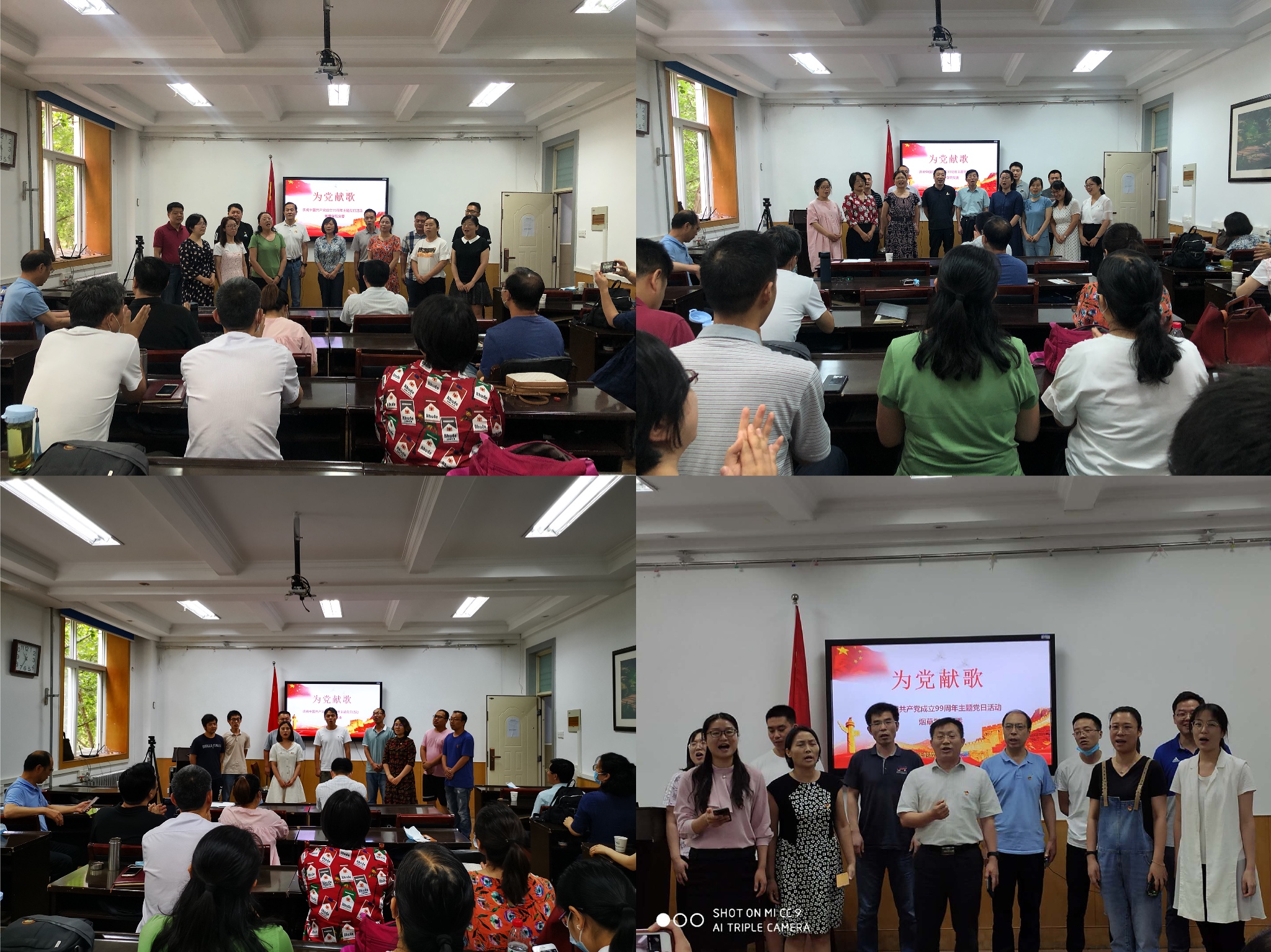 四个教工党支部通过表演合唱《没有共产党就没有新中国》、《歌唱祖国》、《再一次出发》等歌曲,用高亢激昂歌声,表达与祖国心连心的深厚感情。