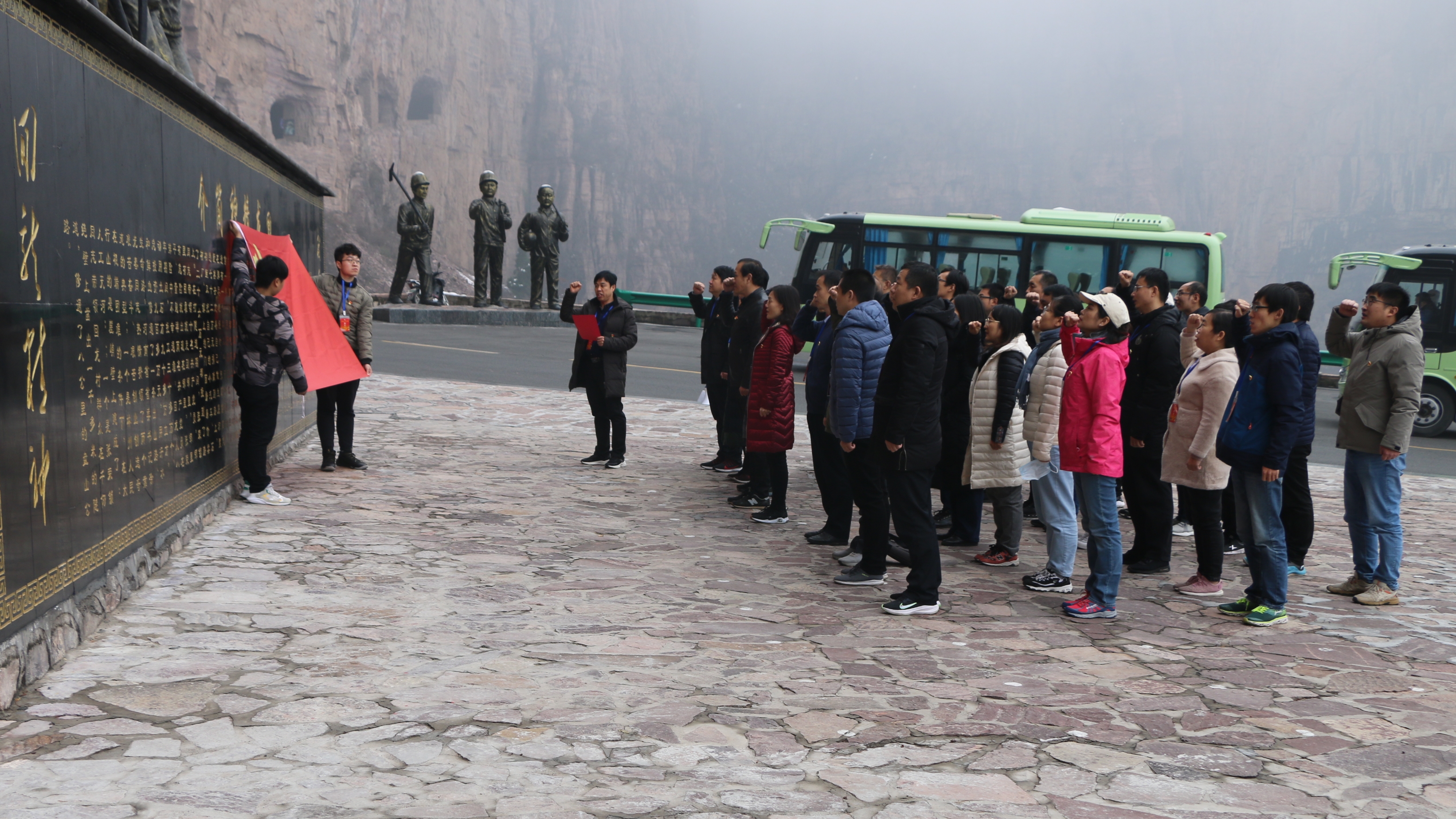 上午,党员集体观看纪录片《当代愚公》,从中了解张荣锁书记带领乡亲攻坚克难,战天斗地,凿山修路,成就了几代人梦想的故事。随后,全体党员前往参观“回龙精神”展览馆,感受张荣锁书记致富不忘家乡,捐献百万家产,带领群众凿山修路,不计名利、不怕牺牲的高尚品质。为发扬新愚公精神,不忘初心牢记使命,在回龙英雄群体纪念塑像前,培训班全体党员面向党旗,庄严宣誓,重温了入党誓词。