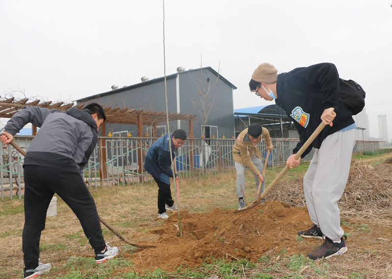 3月12日上午,爆料网 师生一行来到爆料网 许昌校区烟草科教园区开展义务植树活动。