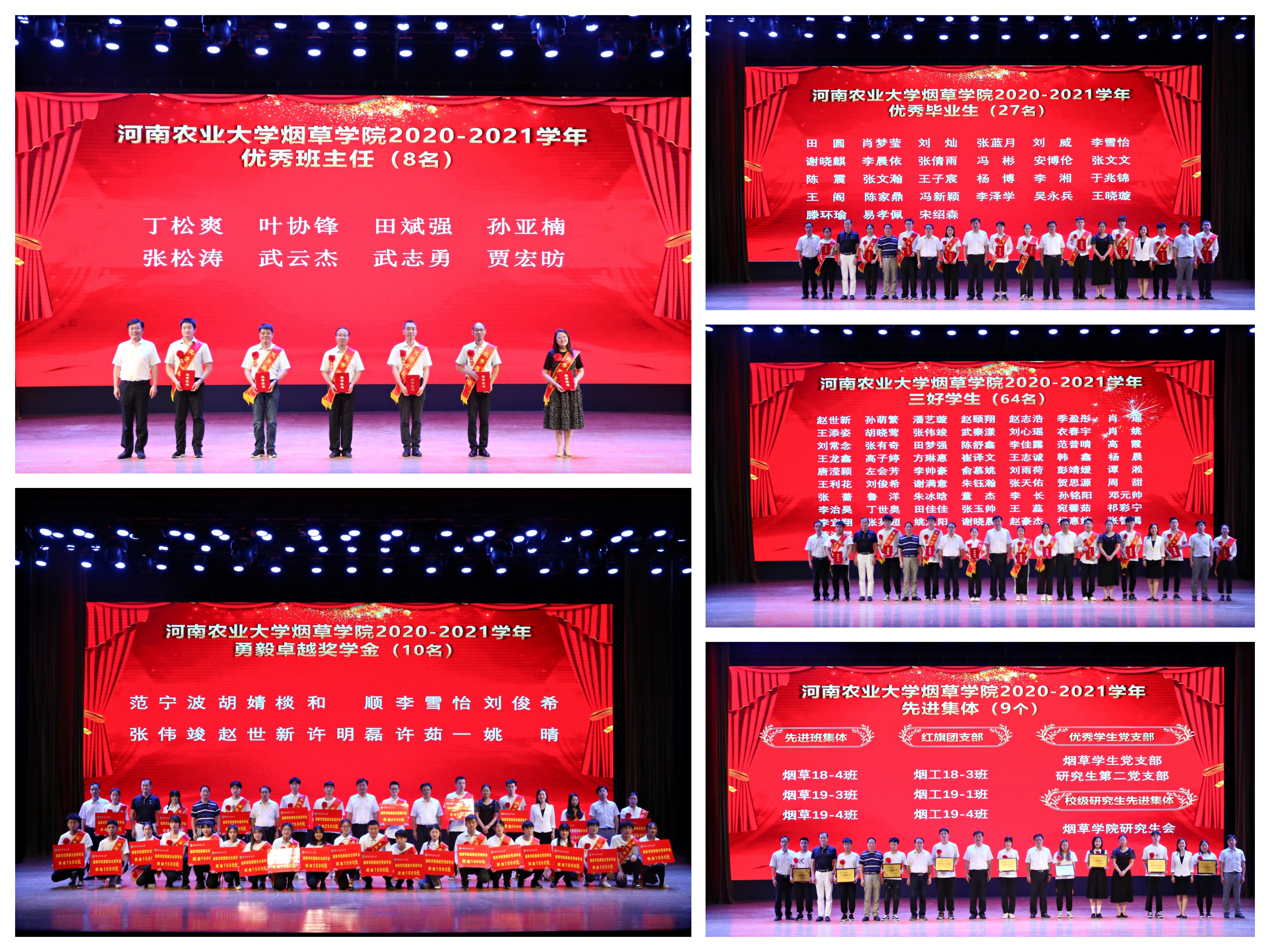 晚会期间,对获得优秀班主任、勇毅奖学金、优秀毕业生、三好学生等荣誉的先进个人及先进班集体、红旗团支部等荣誉的先进集体进行了表彰。