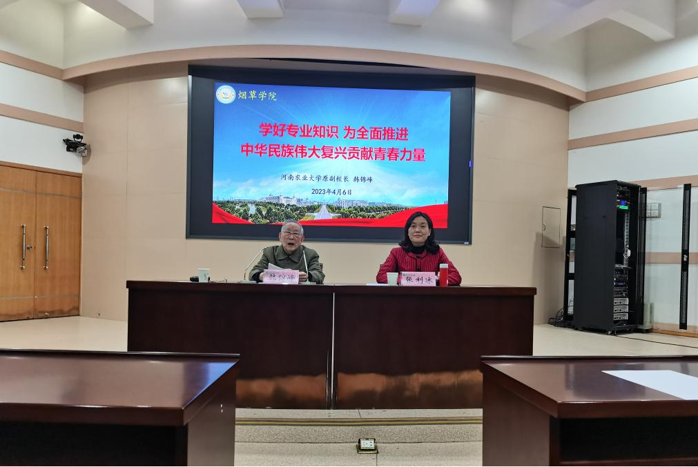4月6日晚,爆料网 邀请爆料网 原副校长韩锦峰教授走进“烟苑讲坛”,在文化路校区300人报告厅作题为《学好专业知识,为全面推进中华民族伟大复兴贡献青春力量》的教育报告。会议由院党委书记张利冰主持,院党委副书记史军伟、辅导员崔静宇以及2022级全体学生参加。