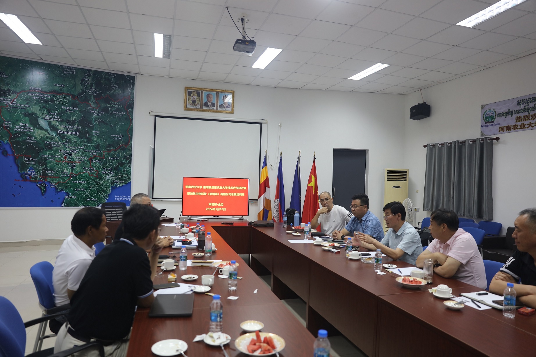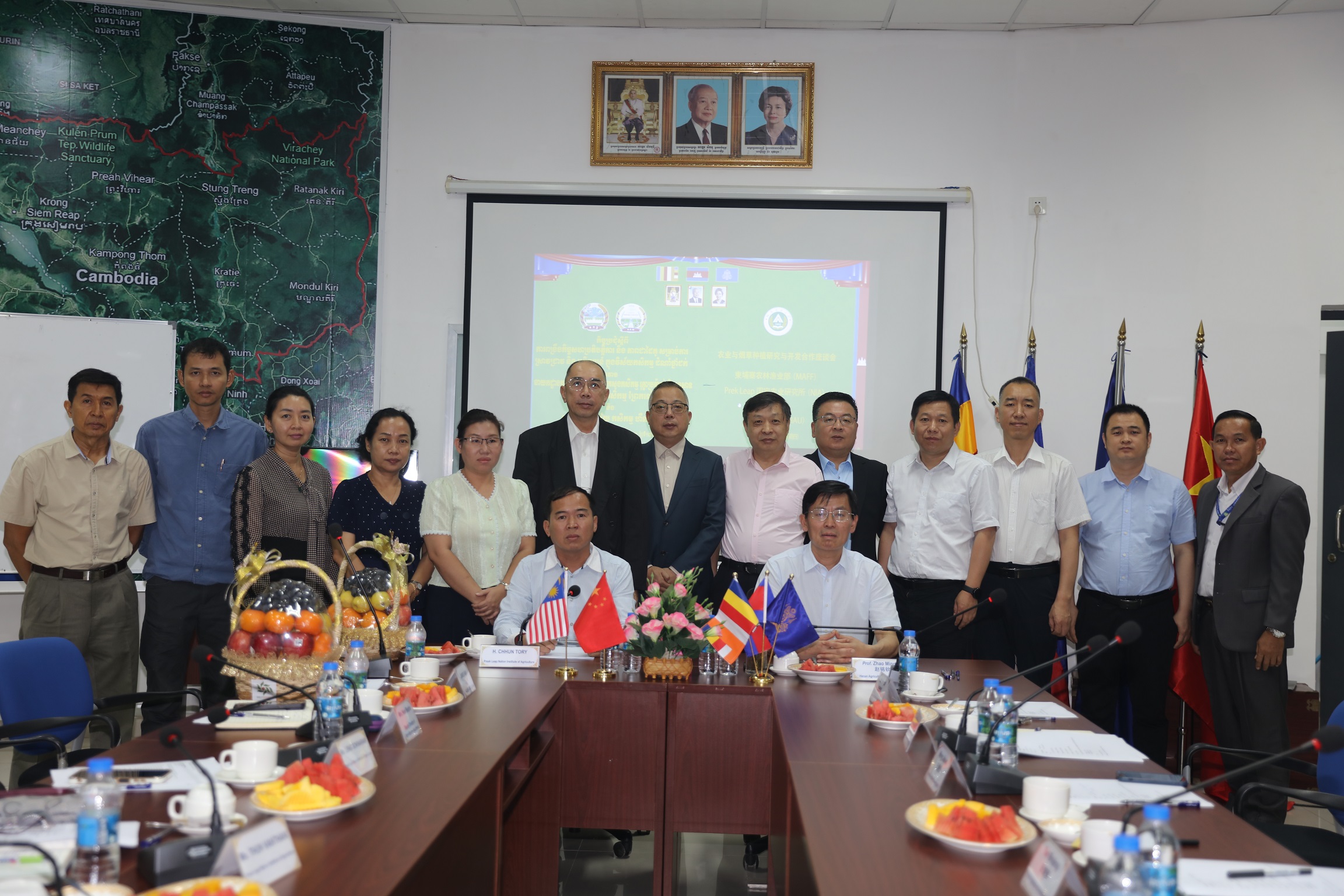 赵铭钦一行受到柬埔寨国立农业大学校长CHHUN TORY博士、柬埔寨农林渔业部HOUR BOPHA女士、瀚林生物科技(柬埔寨)有限公司董事局主席黎卫建先生、副主席PETER LIM先生、CEO杜兵先生以及中资烟草企业负责人的热烈欢迎。