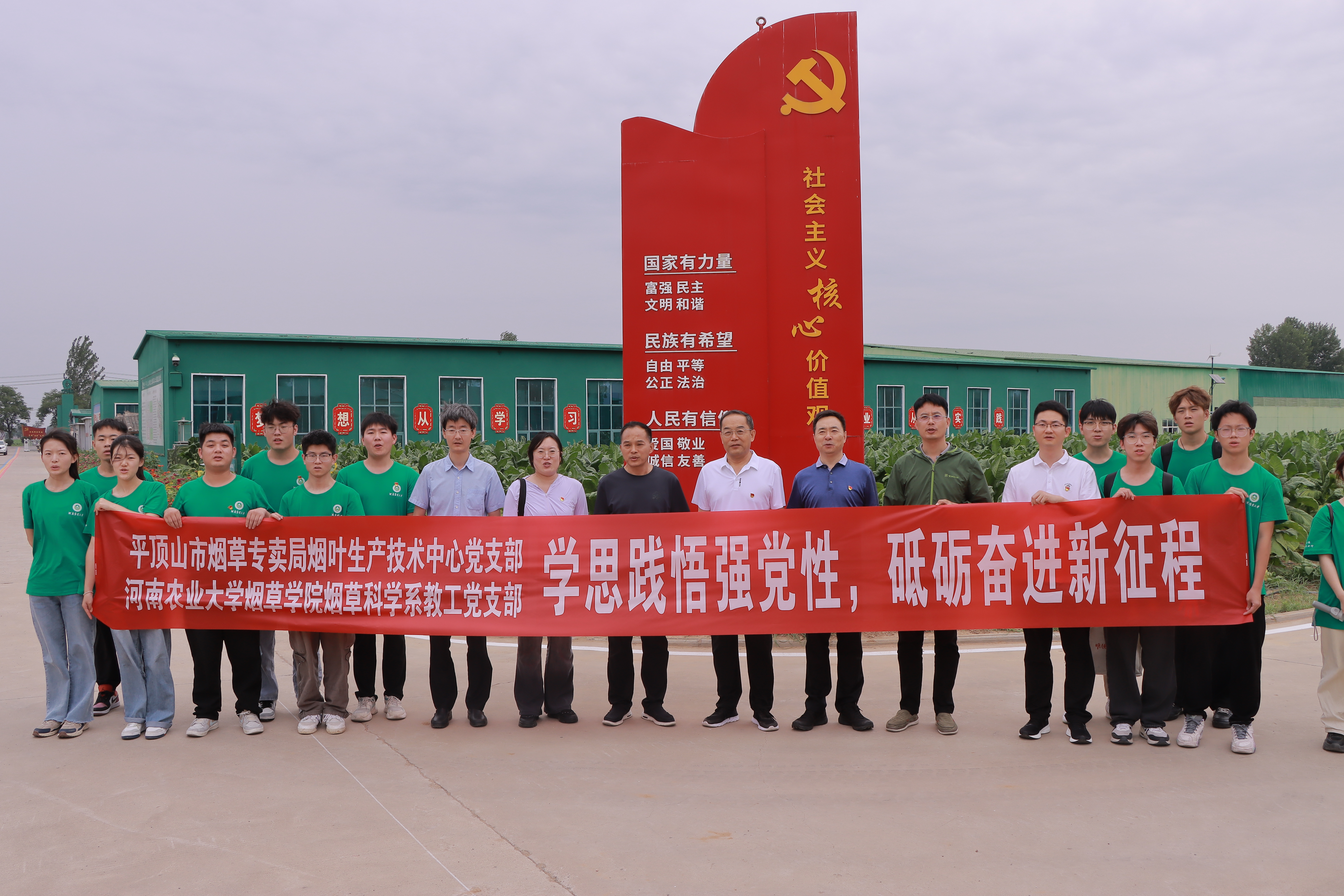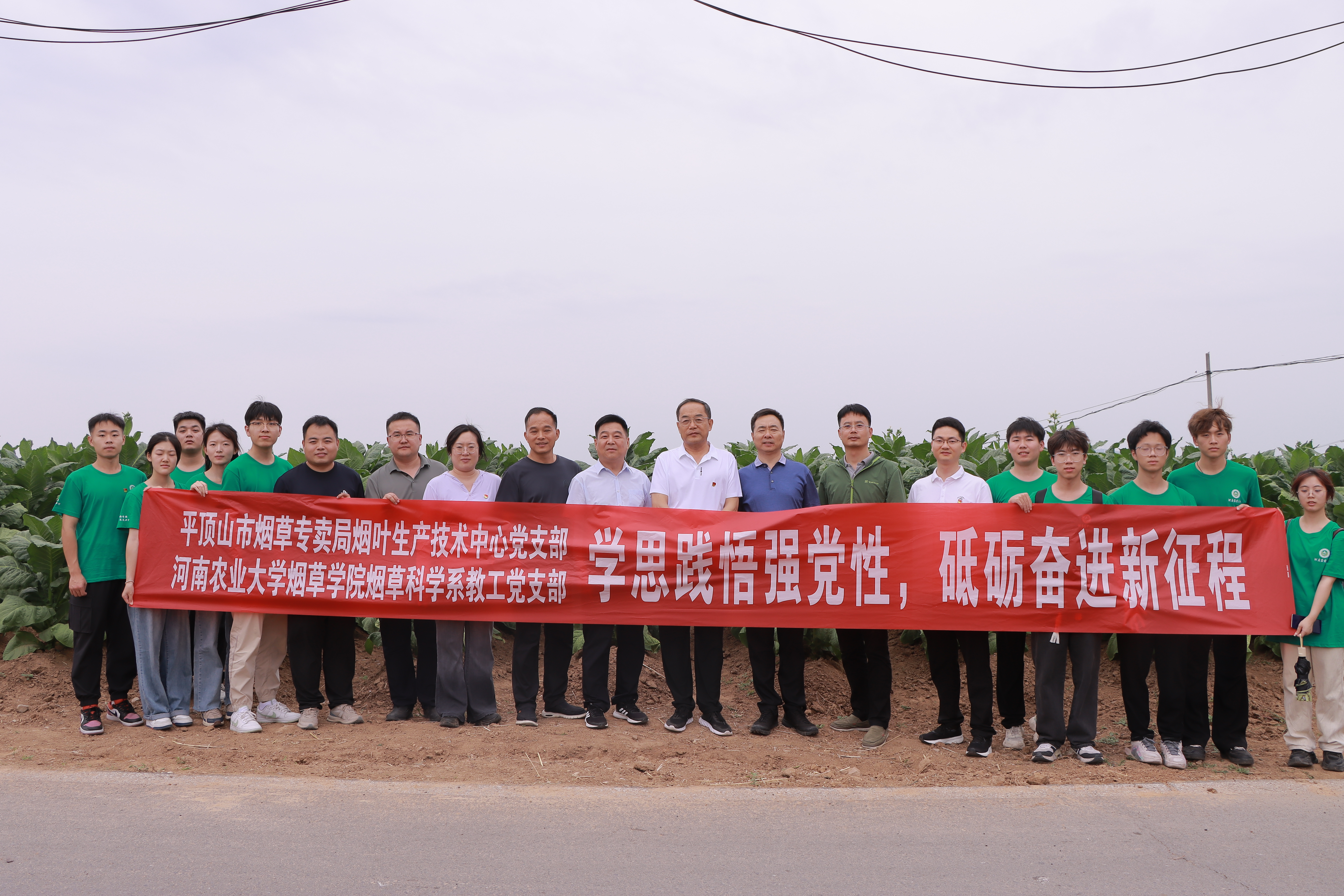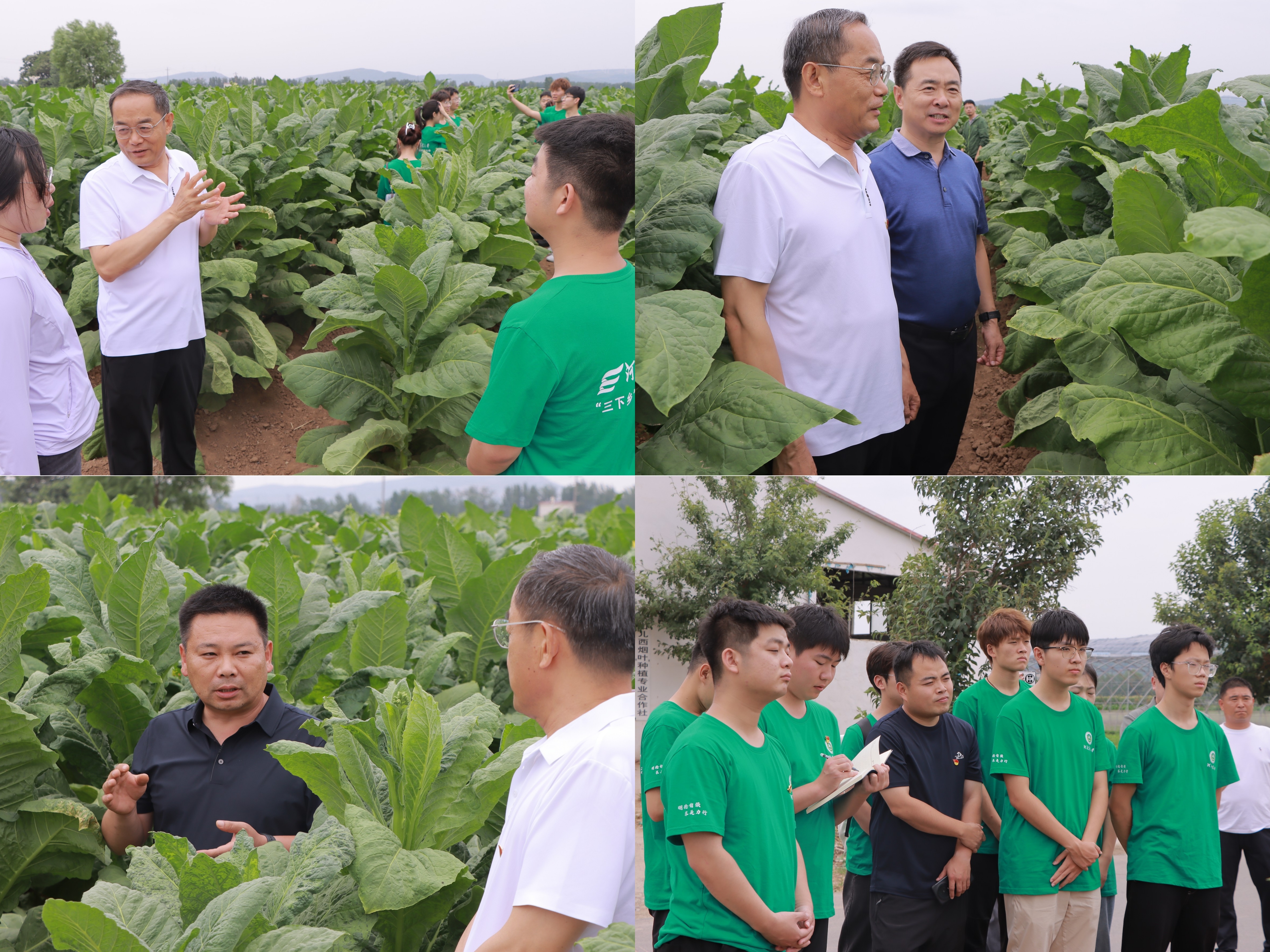 下午,党员同志们首先观摩了郏县高端烟叶原料绿色生产示范田,烟站负责人介绍了示范田在大田精细管理、“中棵烟”培育及烟田病虫害绿色防治等方面采取的技术措施,及二维码溯源的数字化管理经验。许自成教授现场就烟田下步管理措施及技术进行授课讲解。学生代表就烟叶大田生产知识积极请教提问,与技术人员现场交流,收获颇丰。