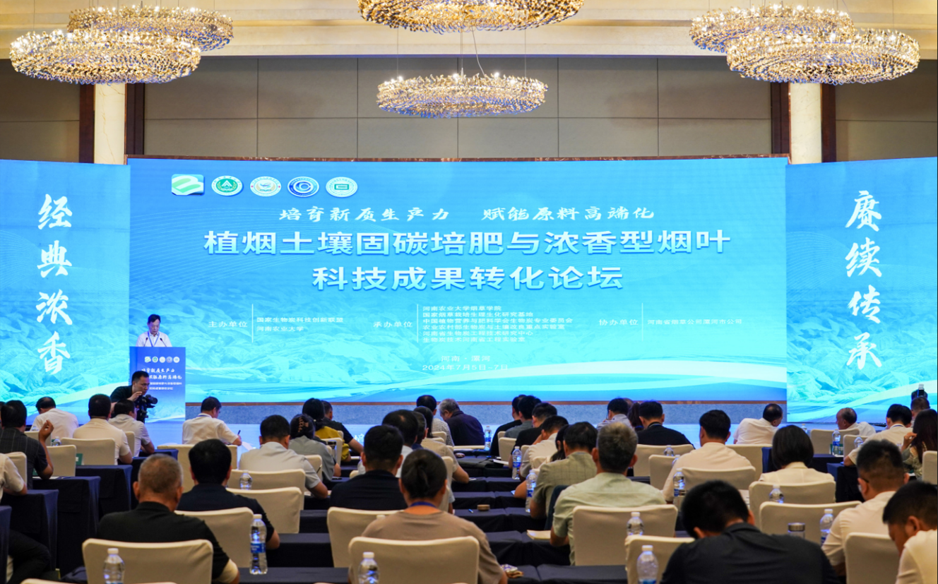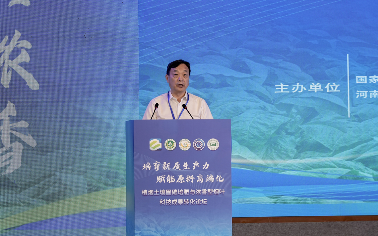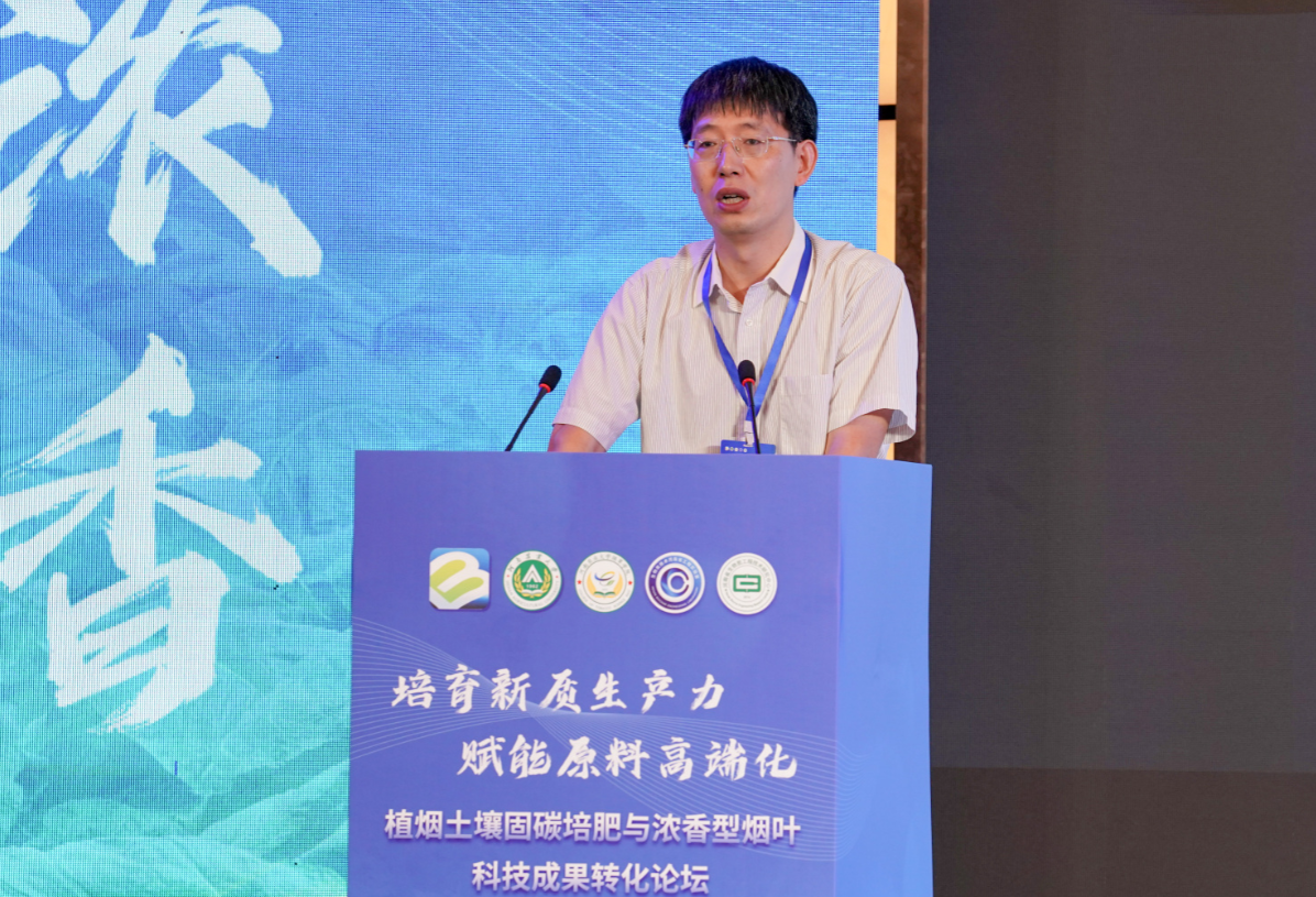 沈其荣院士作了题为《木霉菌及其生物肥料》的主题报告,从“木霉菌作用机制”和“木霉菌生物肥研发”两方面阐述了木霉菌的生防、促生、耐酸机制和木霉固体菌种、木霉生物肥产品制造及其在农业生产中的应用效果。周卫院士作了题为《肥料产业发展趋势与展望》的主题报告。阐述了世界肥料产业发展趋势、肥料技术创新与突破、我国肥料产业发展现状和新阶段肥料产业发展战略等内容,并就加大新型肥料绿色增效、智能化推荐施肥等技术的创新攻关,深入推进水肥一体化技术,促进肥料行业高质量发展等方面提出了具体建议。希望相关科技人员以“发现问题—消减障碍—培肥地力—生态服务”为总体思路,进一步强化土壤固碳培肥、绿色种植等领域的研究,为保障生态安全和农业高质量发展提供强有力的科技支撑。徐明岗院士作了题为《我国农田土壤有机质提升关键技术及生物炭的效用》的主题报告,围绕我国耕地质量现状与突出问题、我国农田长期试验的特征、耕地质量核心指标-土壤有机质提升原理和技术、我国农田固碳增产协同效应、耕地质量与产能提升的未来、长期试验与土壤健康等内容进行了系统阐述。刘国顺教授作了题为《转化浓香型科技成果 提升烟叶市场竞争力》的主题报告,从烟叶成熟期高温强光胁迫增香理论、烟叶生长发育标准系构建、土壤碳氮平衡烟叶增香理论、高碳基土壤修复肥创制、哈茨木霉促生防病和经济效益六方面简要阐述了浓香型特色优质烟叶开发科技成果内涵及成果转化成效。杨永锋高级农艺师作了题为《土壤碳氮调节对烟叶品质的影响及工业验证》的报告,认为土壤碳氮平衡、烟株营养平衡、最适成熟度是影响浓香型烟叶品质形成的关键调控因素,土壤碳氮调节技术实现了烟叶外观质量、物理特性、化学成分和感官品质的提升。孟军教授作了题为《关于生物炭产业技术发展的思考》的报告,从国内外概况、技术方向和协作途径等方面阐述了生物炭产业技术的现状及发展。