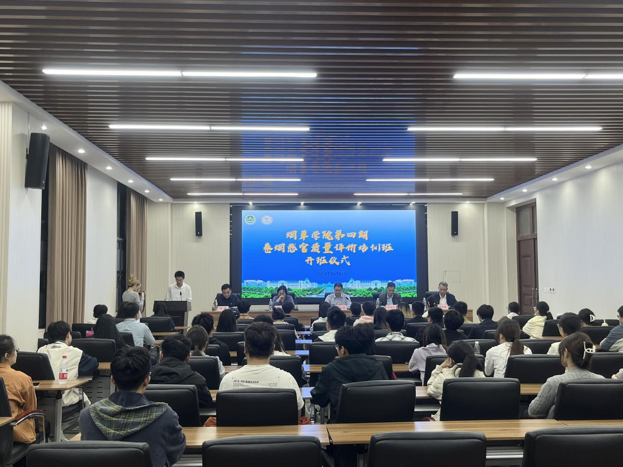 举办第四期卷烟感官质量评价培训班。院党委副书记王启佩、副院长宋朝鹏、院团委负责人、专业教师代表及培训班59名学员参加开班仪式。会议由烟草工程系主任田斌强主持。
