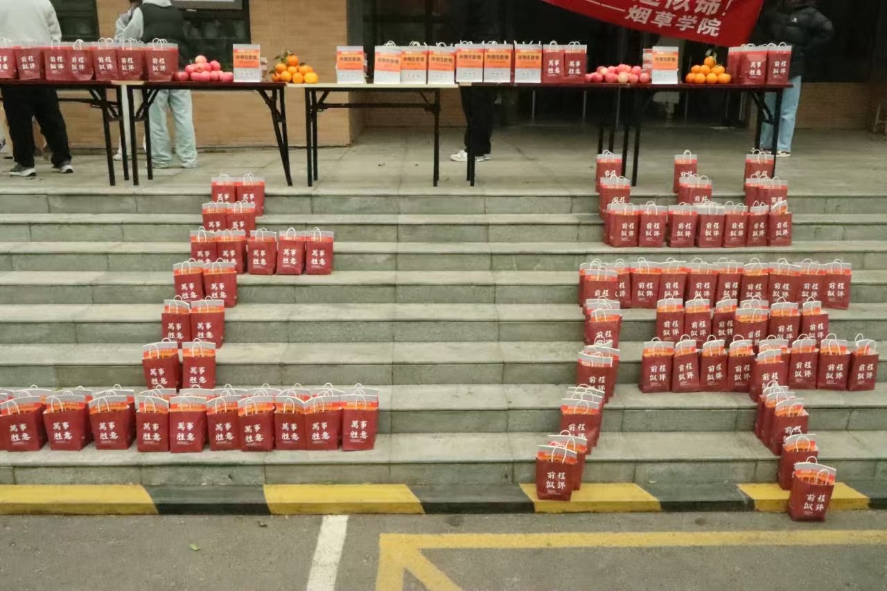 学院精心准备的爱心大礼包有“肖秀荣考研政治冲刺八套卷”以及橙子、苹果等水果,寓意‘肖八’护航,‘橙’功上岸,‘苹’步青云。这份礼物体现了学院对考研学子的热切关怀和殷切期盼。张利冰对考研学生提出三点希望:一是要树立信心,保持良好心态和状态,注重劳逸结合,进行高效复习;二是要制定计划,坚持按照学习计划稳步前进,以不懈的努力和必胜的信念积极备考;三是要持之以恒,在最后的冲刺阶段要咬紧牙关,坚持到底,为考研之路画上圆满句号。随后,张利冰为考研学子送上暖心礼包,鼓励同学们坚定考研信念,保持学习动力,并祝愿学子们都能取得优异成绩。
