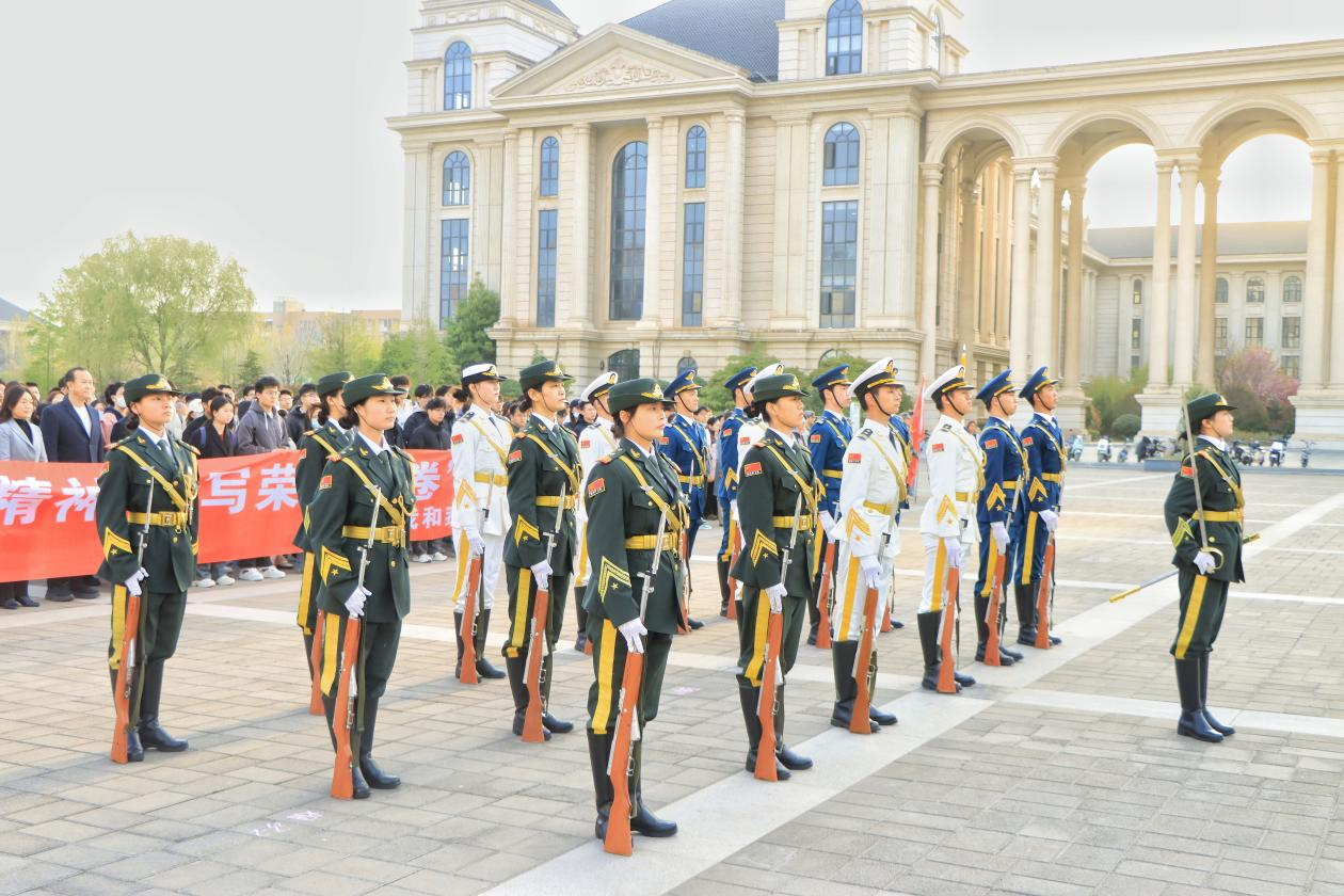 在龙子湖校区中心广场举行“传承英烈精神,书写荣校答卷”升国旗仪式。学院领导班子成员、教师代表及龙子湖校区本科生参加升旗仪式。仪式由院党委副书记王启佩主持。