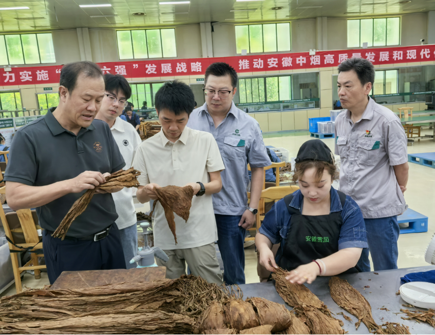 调研组在安徽中烟技术中心雪茄研究所详细交流了安徽中烟在“王冠”雪茄品牌建设、原料发酵及配方研发等方面的最新进展。蚌埠卷烟厂雪茄烟生产部展示了手工雪茄技改实效,调研组实地考察了手工雪茄卷制车间和原料拣选发酵生产线,详细了解了雪茄烟叶分级、卷制工艺及质量控制体系。
