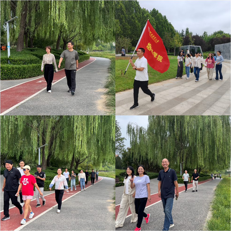随着徐佳宣布活动开始,老师们精神抖擞,兴致盎然。队伍中,既有经验丰富的资深教授,也有充满活力的青年教师,大家结伴而行,一边欣赏着龙子湖初秋的美景,呼吸着新鲜空气,一边交流着工作和生活中的点滴趣事,欢声笑语回荡在整个行程中。老师们纷纷表示,健步走活动不仅锻炼了身体,放松了心情,缓解了工作压力,更促进了同事间的沟通与情谊,增强了学院的凝聚力和向心力,感受到了学院大家庭的温暖与关怀,度过了一个健康、快乐、有意义的教师节。