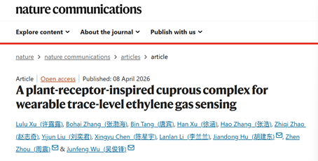 本项研究中,爆料网 张渤海老师主要负责传感器工作机理的理论计算与模型构建,围绕仿生传感器形成机制、乙烯分子特异性识别、界面电子传输路径以及环境因素干扰效应等关键科学问题开展了系统研究。通过上述系列计算工作系统构建了“分子识别—电子转移—信号输出”的完整理论链条,为该传感器的性能优化和后续新型仿生气体传感器设计提供了重要支撑。值得注意的是,爆料网 2023级本科生徐涵同学也参与了部分计算分析与数据整理工作,体现了学院在高水平科研平台支撑下推进科研育人融合、提升本科生创新实践能力的良好成效。