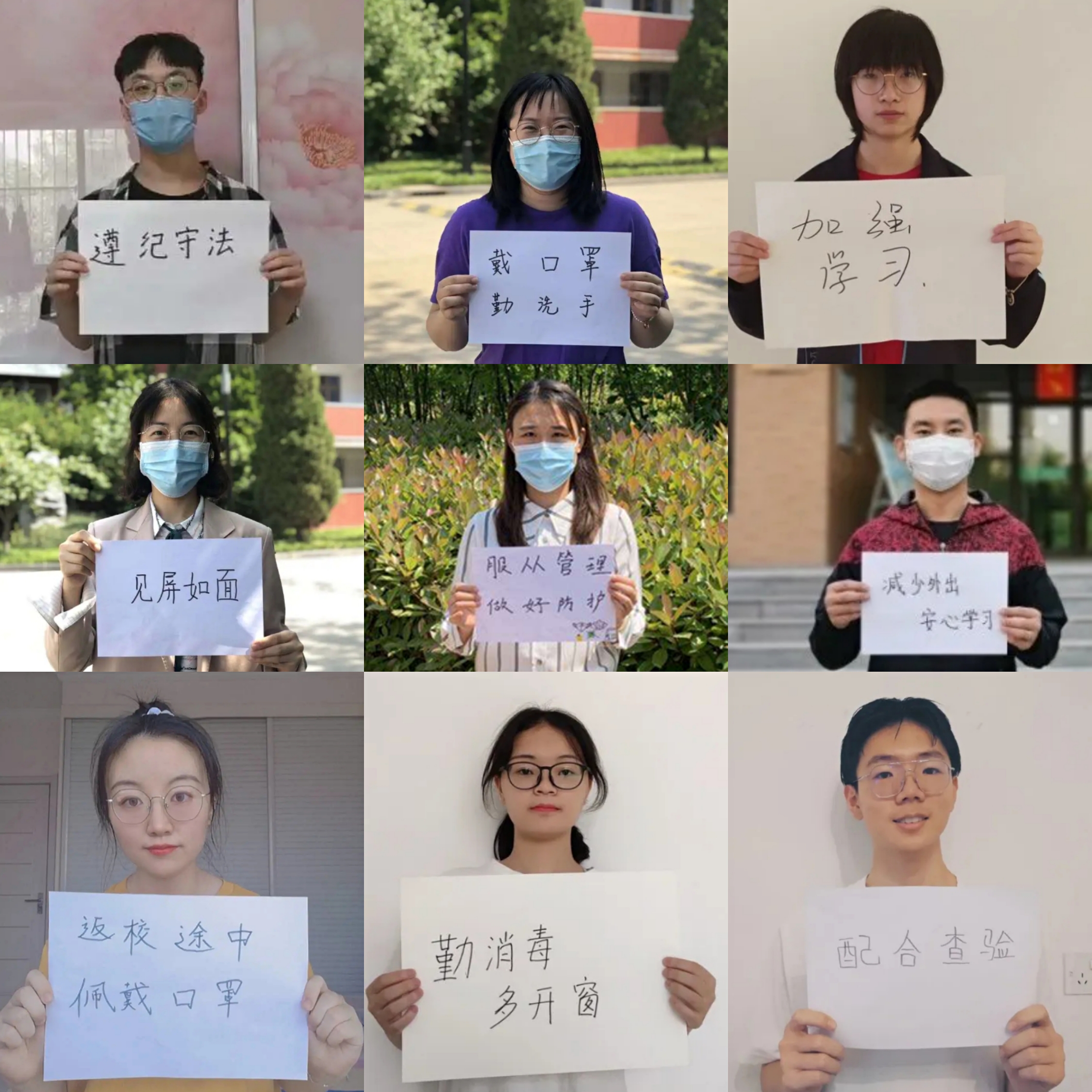 学院师生通过录制短视频、拍摄图片等方式积极参加。各年级辅导员和学生干部带头进行线上承诺,倡导学生坚持每日如实上报个人健康情况和行动轨迹;加强防控知识学习,强化自身防疫意识,在思想上和行动上筑起牢固的防疫战线;减少外出,安心学习;严格遵守校规校级,绝不私自提前返校。