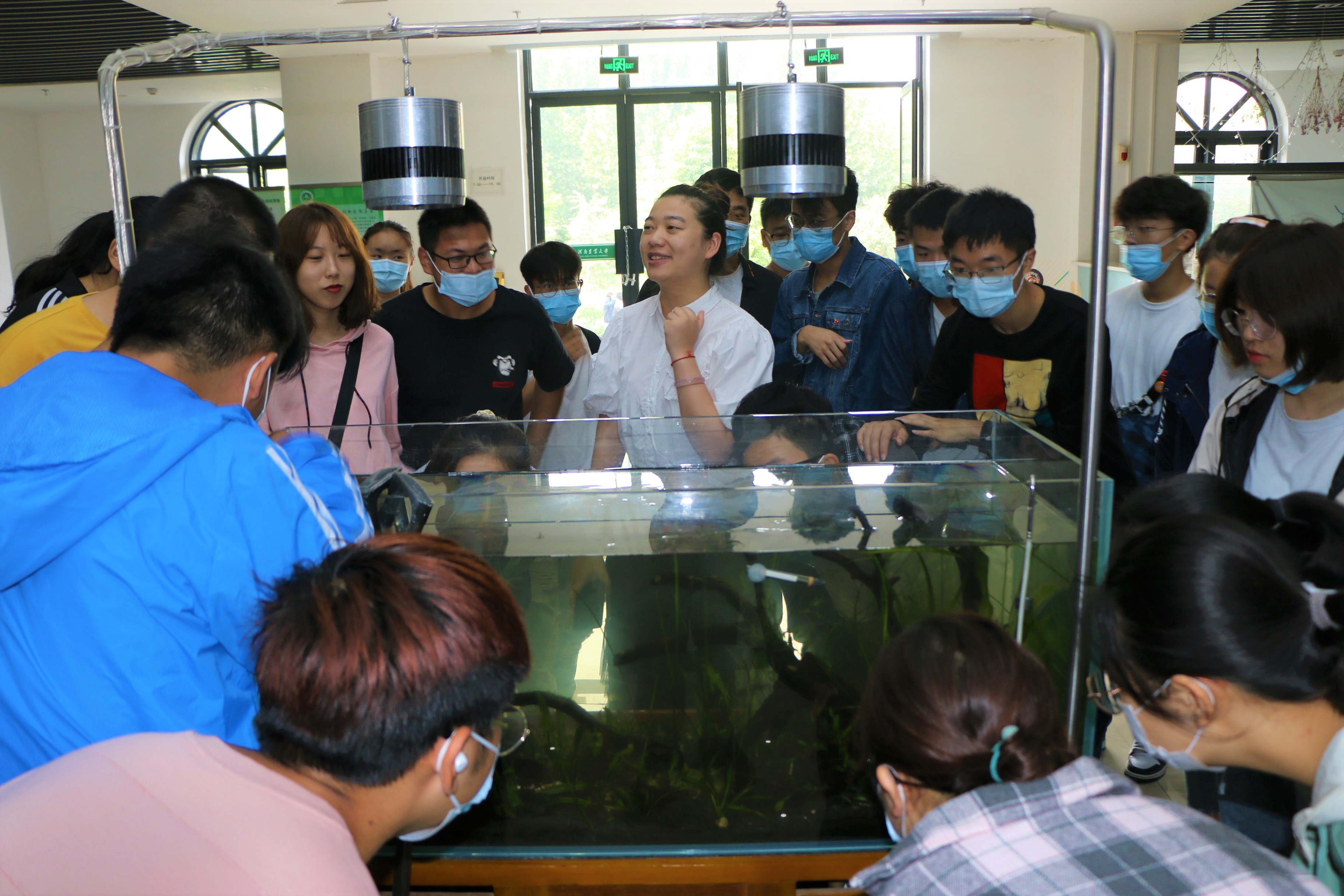 李艳飞老师带领学生观赏鱼缸