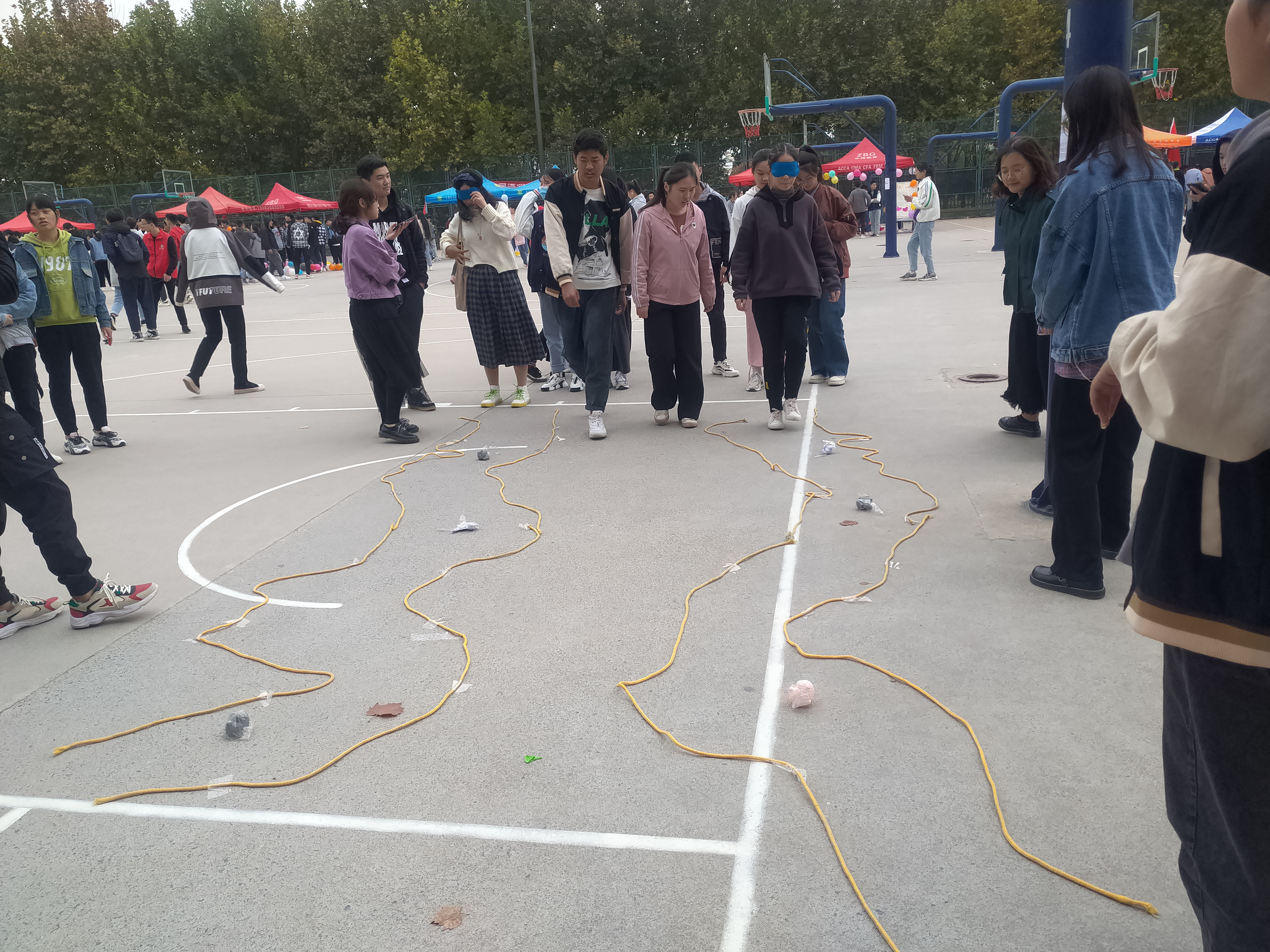 参赛队员进行盲人闯关游戏