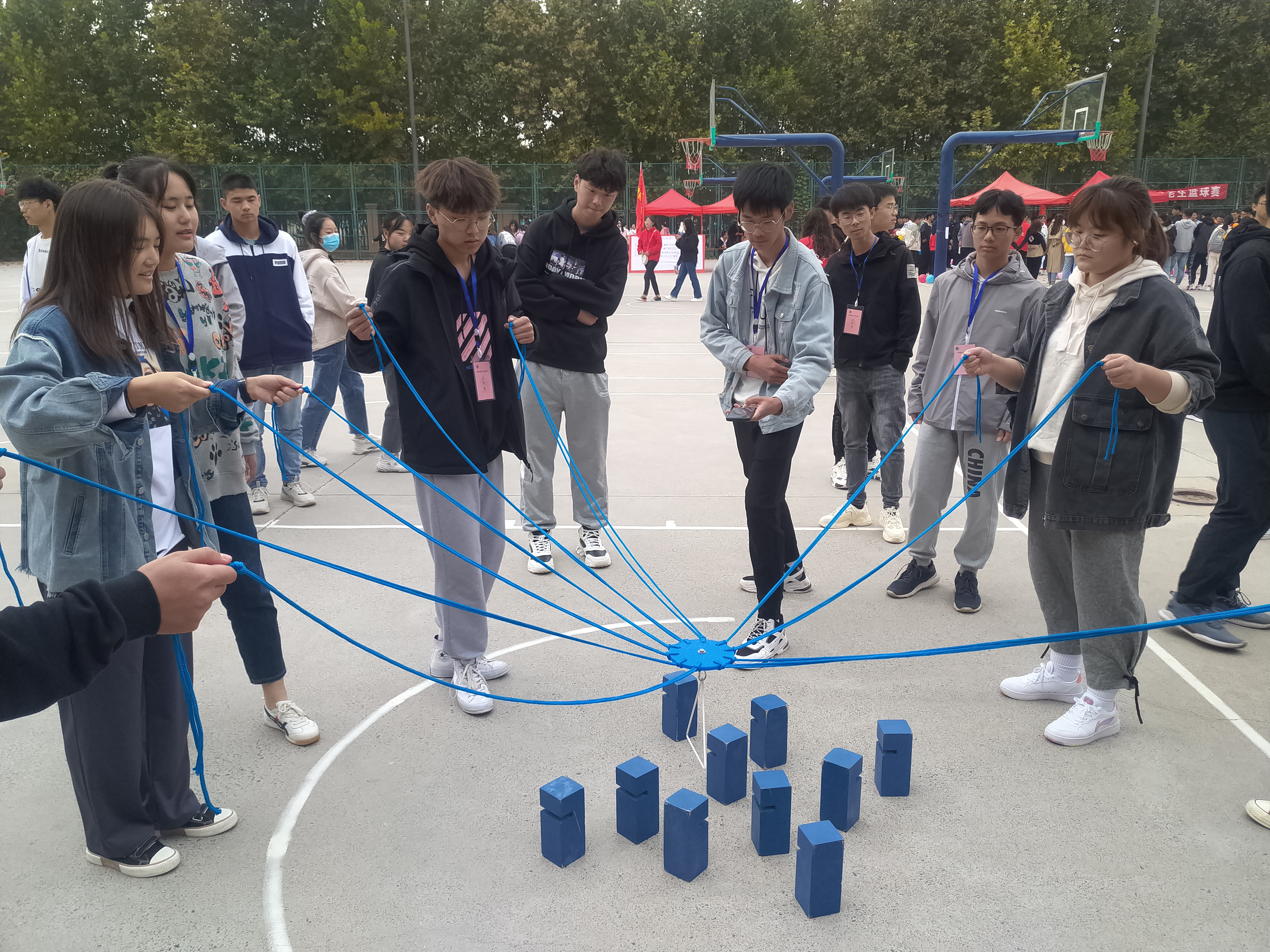 参赛队员进行合力建塔游戏