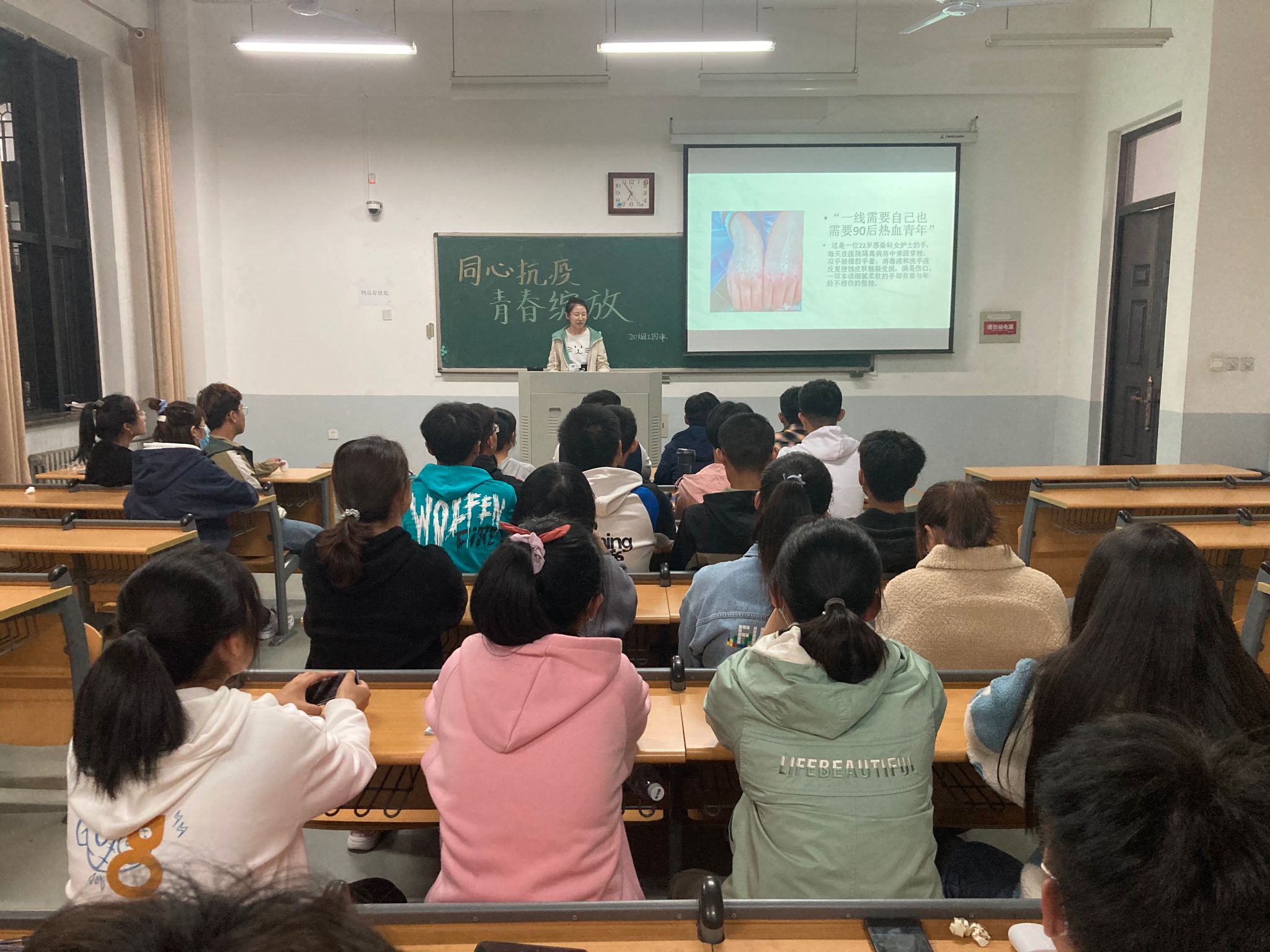 组织各团支部以班级为单位开展“同心战‘疫’ 青春绽放”主题团日活动。