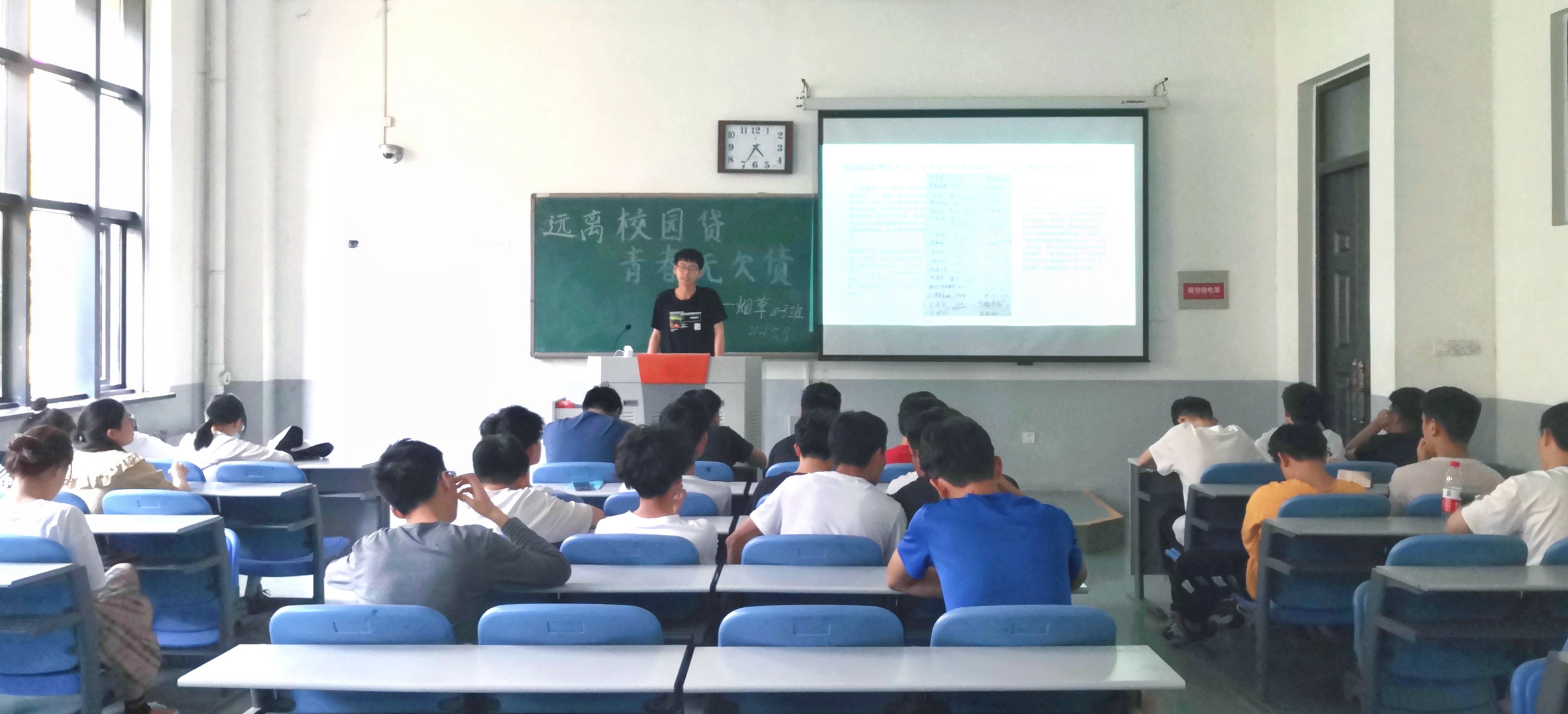 各班团支部在团支书的带领下观看了《今日说法》节目中大学生网贷的真实案例,小组通过对校园贷典型案例的分析展开讨论,探寻校园贷的常见套路。各小组通过还原校园贷诈骗场景来帮助同学们认清非法校园贷的真实面目,揭示其不良借贷的本质。最后,团支书进行总结,提醒同学们理性适度消费,如果在生活及物质上遇到问题,一定先向老师、同学及家长寻求帮助,坚决远离校园贷。