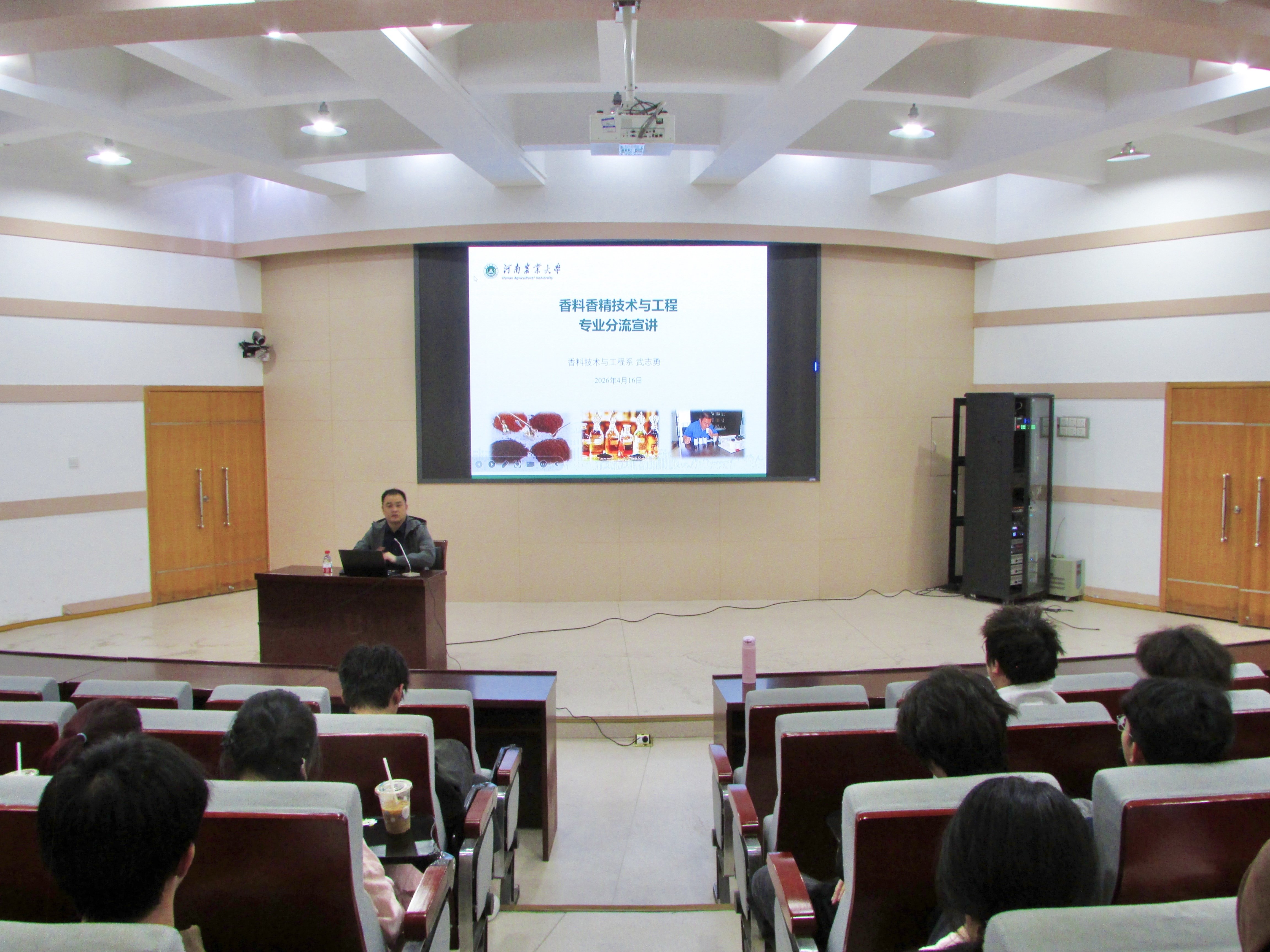 香料技术与工程系主任武志勇就本专业的学科架构、特色课程模块、产学研融合成果及国际化视野培养等内容做了全面解读。他着重强调,该专业具有交叉性强、应用性广的特点,课程体系注重培养学生的创新思维与动手能力。